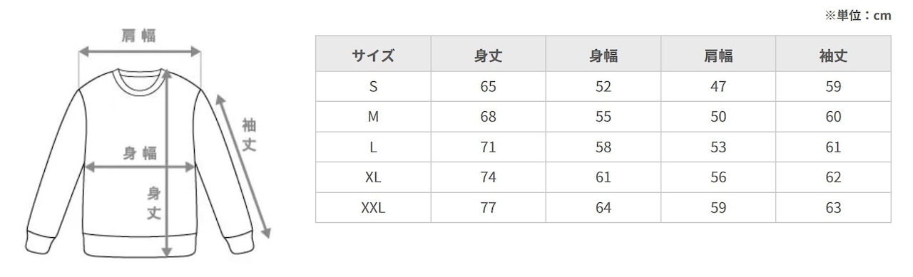 ご購入前にサイズ表をご確認のうえ
